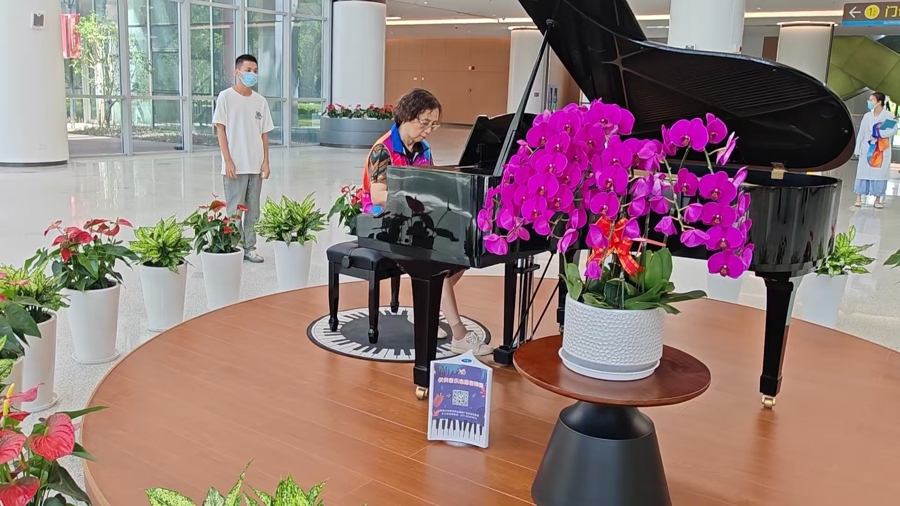 音乐志愿者们的琴声能在医院持续流淌,离不开两架特殊钢琴的 “助力”——2024年10月,瑞金医院乳腺外科副主任医师黄欧和心内科患者朱亦平共同捐赠了两架公益钢琴,让黄浦院区门诊大厅的旧钢琴完成“换新”,也为嘉定院区新增了一架“爱心琴”。